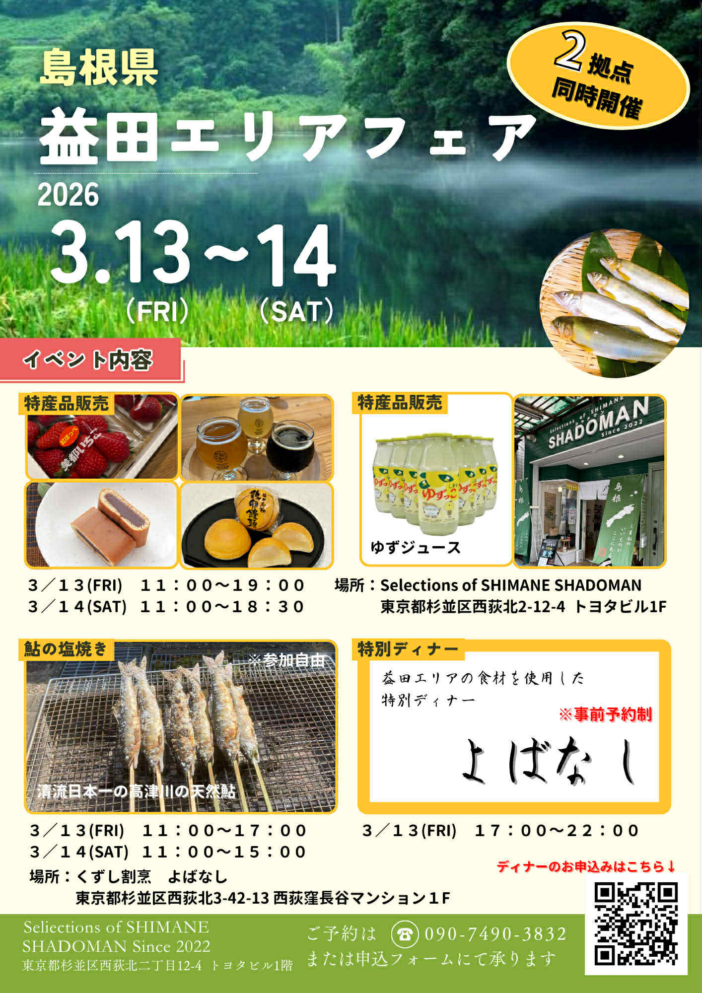 13(金)の夜には益田エリアの特産品を使った特別ディナー企画も。
