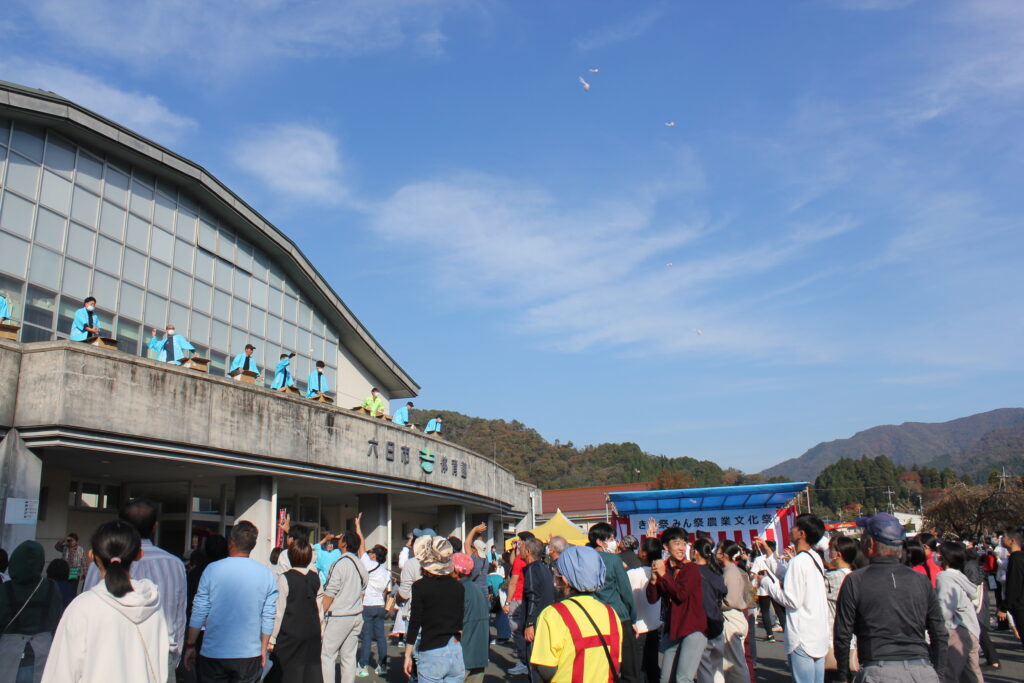 とても楽しそうですね! 2枚目の写真は、餅まきならぬ「何まき」なんでしょう???